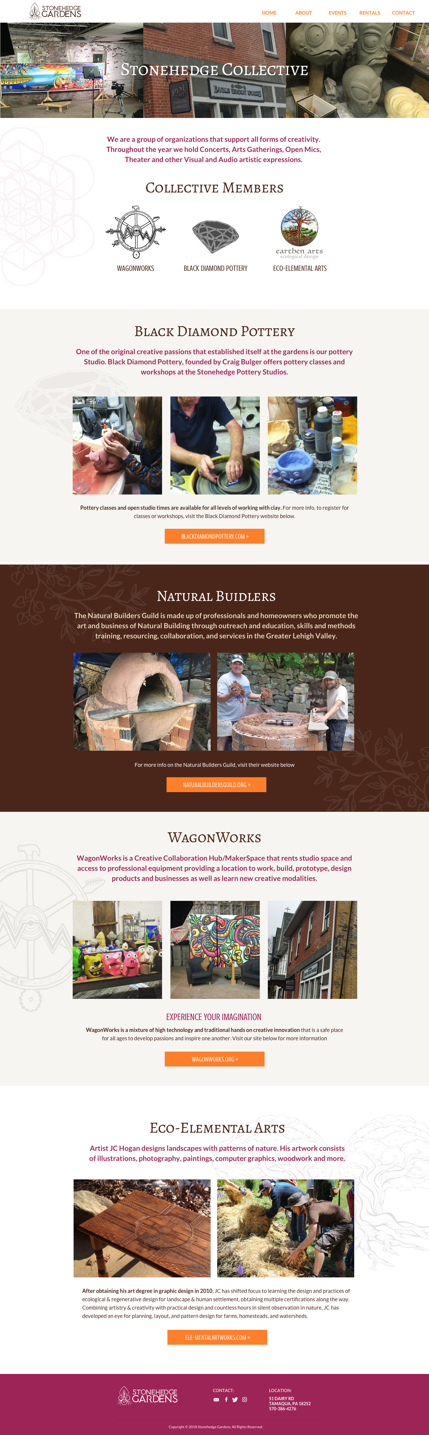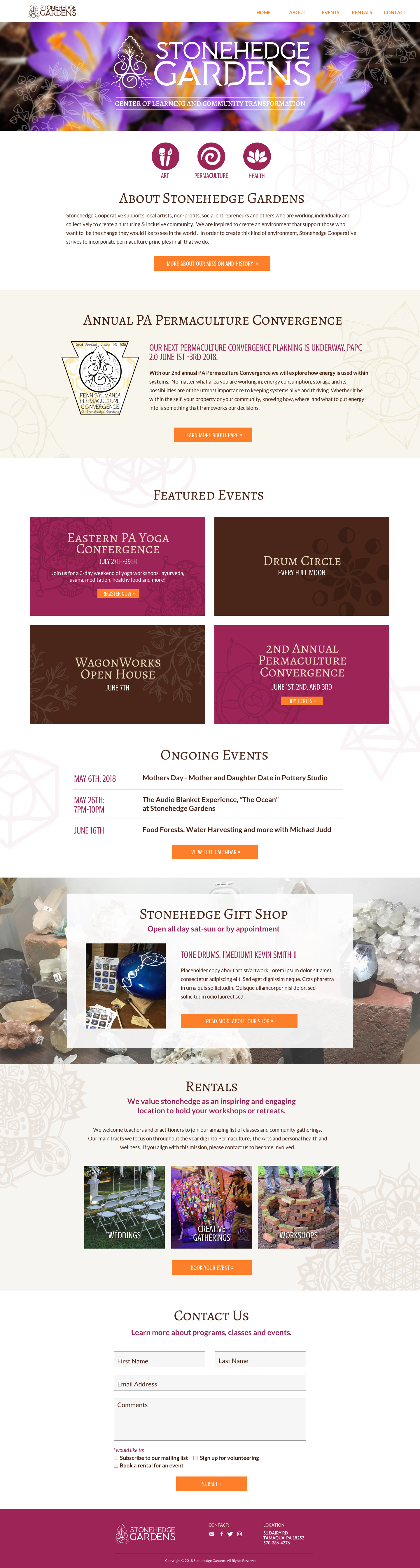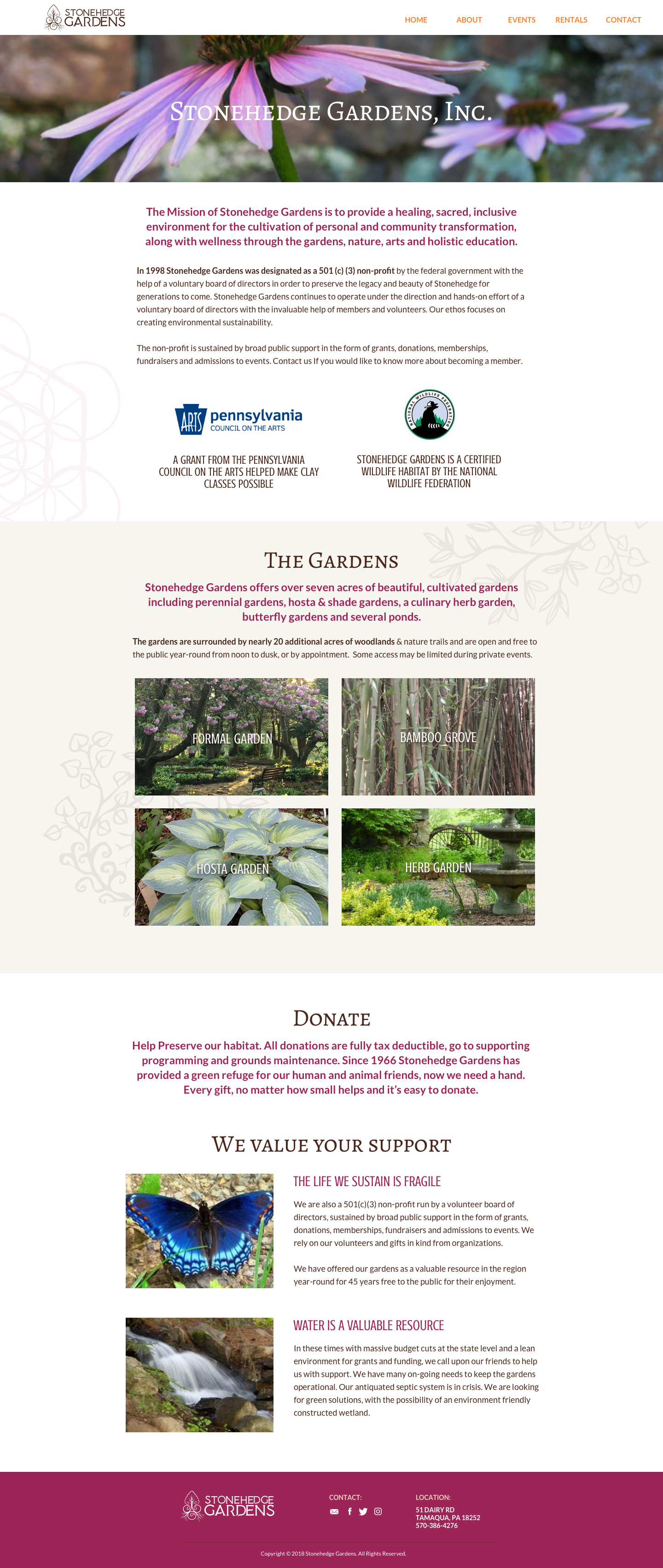 Stonehedge Gardens is a non-profit organization and garden center focused on the arts, health, and permaculture. They hold various workshops and events, along with running a gift shop, collective maker space and pottery studio.